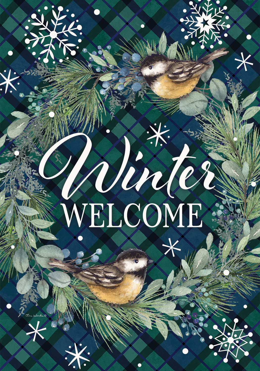 Chickadee Wreath-Flag by Tina Wenke