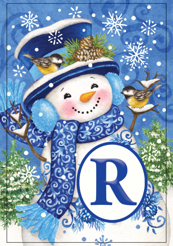 Wind Current Chinoiserie Snowman Monogram-R